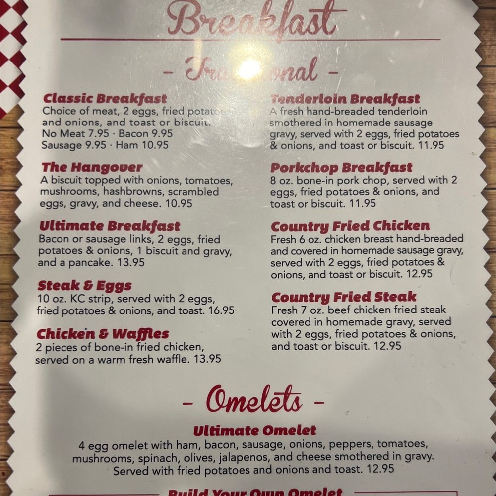 - Omelets Galore: Indulge in the Ultimate Omelet, bursting with flavors from ham, bacon, and fresh veggies, smothered in savory gravy.